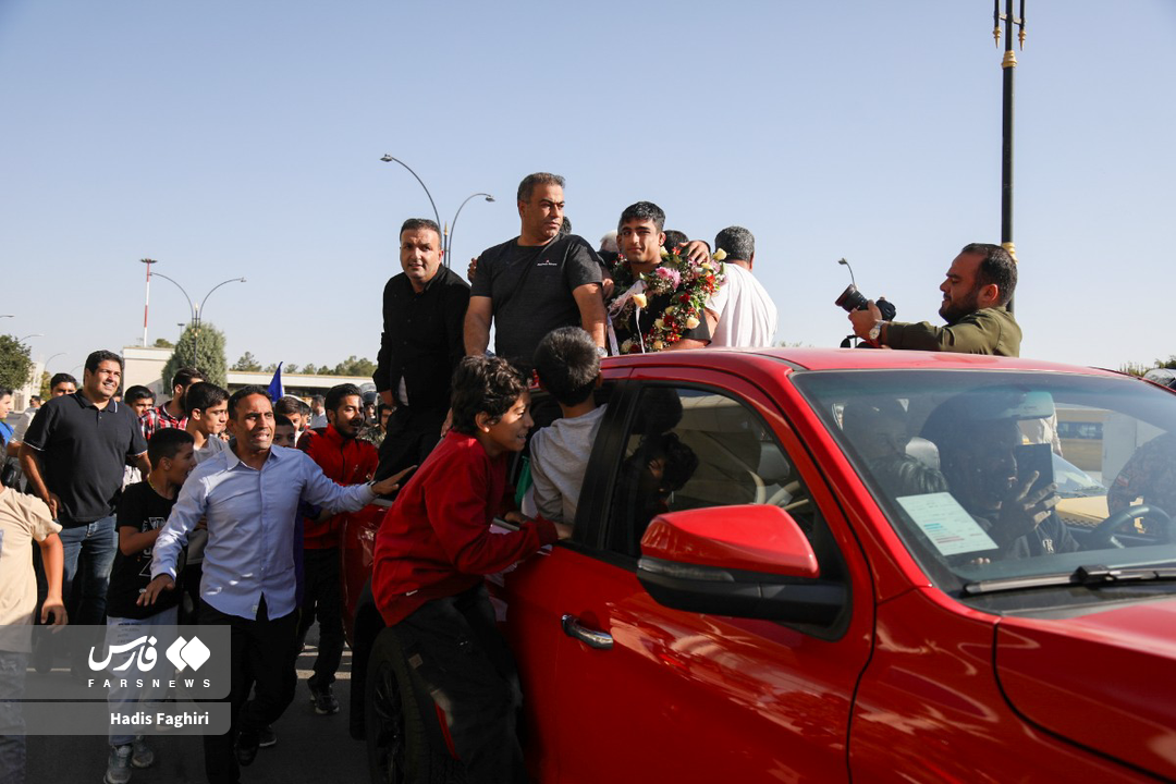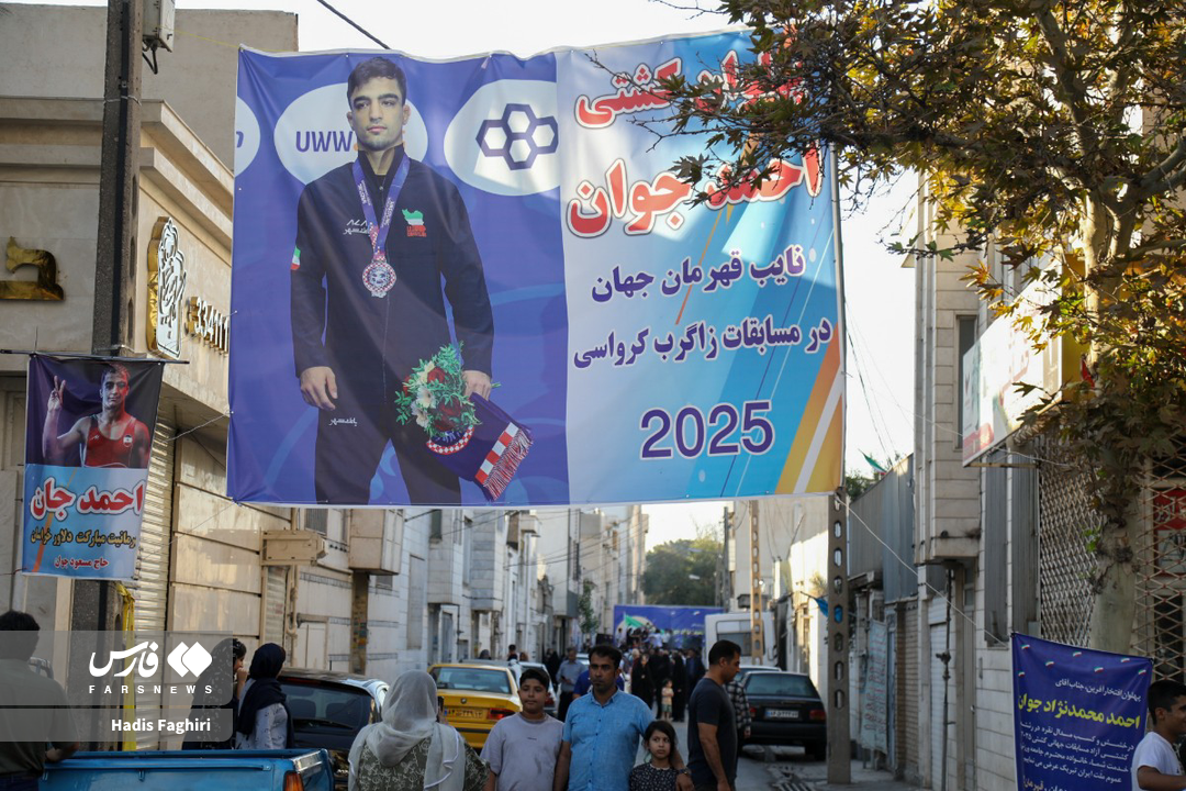 A welcoming ceremony was held for young Ahmad Mohammadnejad, the second-place winner and silver medalist of the 2025 Zagreb World Wrestling Championships. The people of Mashhad celebrated from the Shahid Hashemi Nejad International Airport all the way to the home of this wrestling champion.